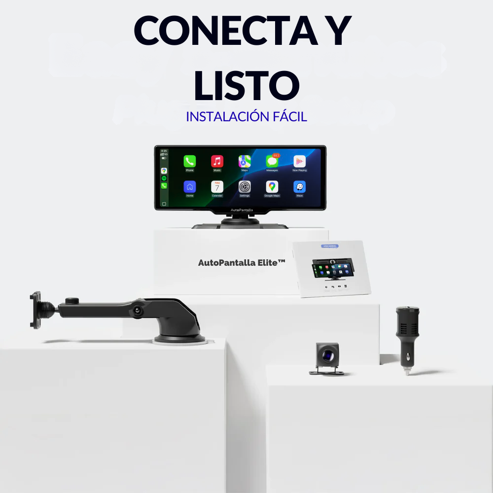 Funciona en cualquier coche con puerto de 12V. Compatible con Apple CarPlay y Android Auto sin necesidad de cambiar tu estéreo.