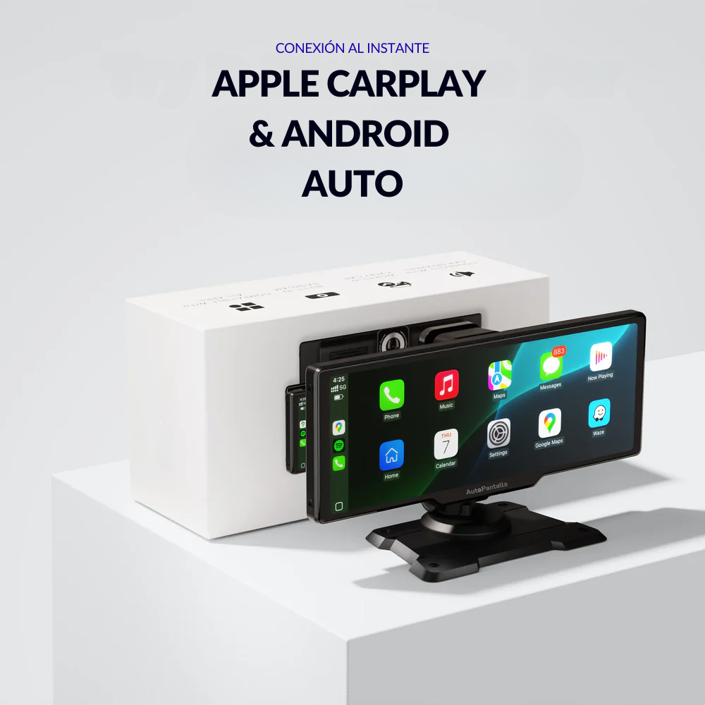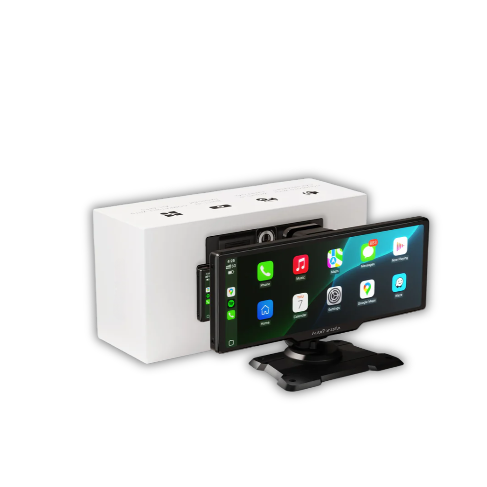 Convierte cualquier coche en un vehículo moderno con nuestra pantalla 4K de 10 pulgadas y 60FPS. Disfruta de Apple CarPlay y Android Auto inalámbricos, escucha tu música, usa tus apps de mapas favoritas, atiende llamadas o incluso reproduce tus series mientras esperas.